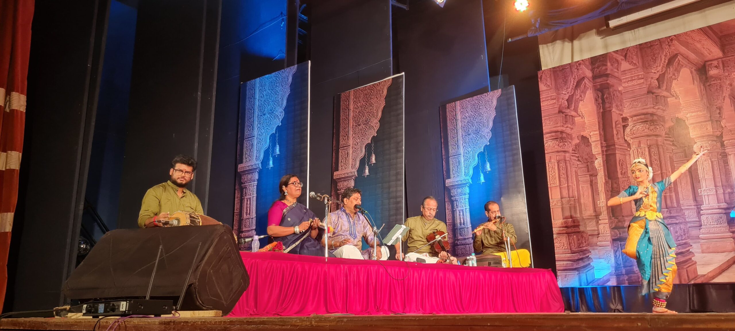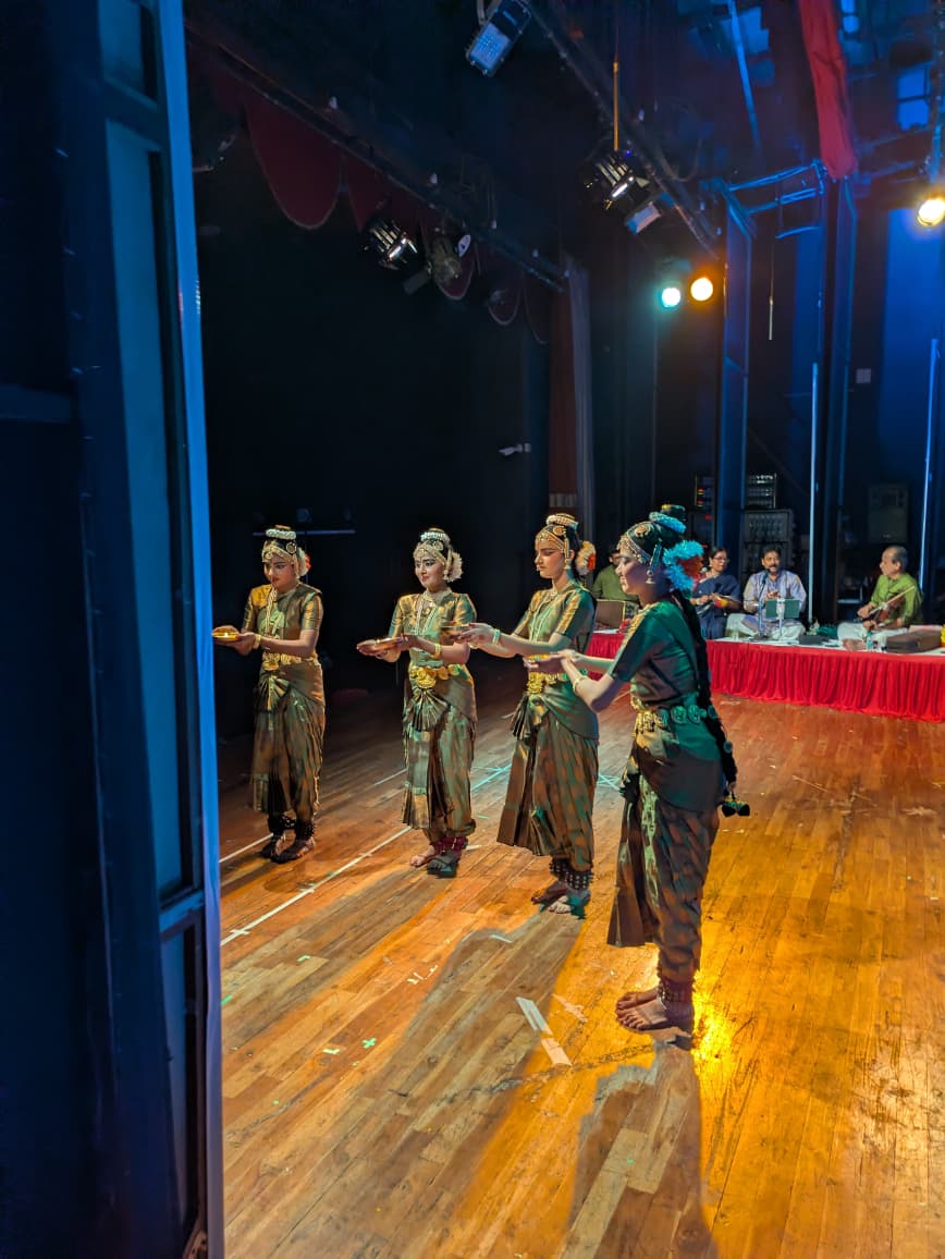 The musicians—vocalist Shri N.N. Shiv Prasad, mridangam artist Shri Prajesh Nair, violinist Shri Balasubramanian R. Sarma, and flautist Shri Atul Sarma—provided impeccable accompaniment, enhancing the emotive and rhythmic fabric. The production team’s efforts in lighting, sound, makeup, and costume design further enriched the immersive experience. Notably, the presence of the chief guest, Shri B.R. Vikram Kumar, an eminent Kuchipudi exponent and editor‑in‑chief of Dance India magazine, signified a meaningful confluence of classical dance traditions, underscoring the event’s prestige and cultural cross‑pollination.